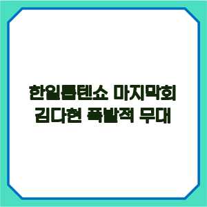 과연 김다현의 무대는 어떤 모습일까요? 그리고 이 프로그램의 마지막 회는 어떤 감동을 선사할지 궁금하지 않으신가요?