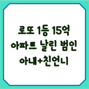 이 기사에 따르면, 로또 1등 당첨금 15억 원과 아파트를 모두 날려버린 범인은 사연자의 아내와 친언니였습니다. 결혼 3년차인 부부는 평소 알뜰하게 살아왔지만, 아내와 친언니가 남편 몰래 대출을 받아 당첨금과 아파트를 모두 날려버린 것으로 밝혀졌습니다.